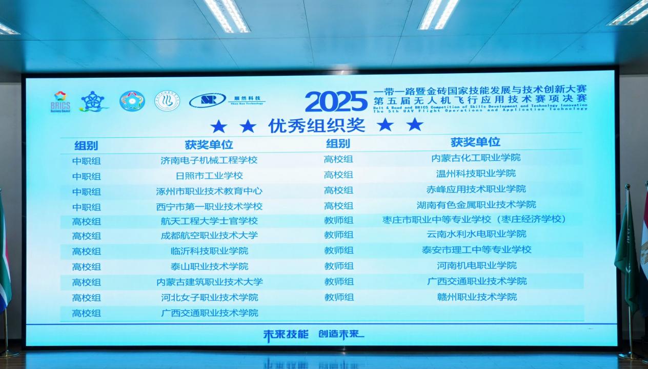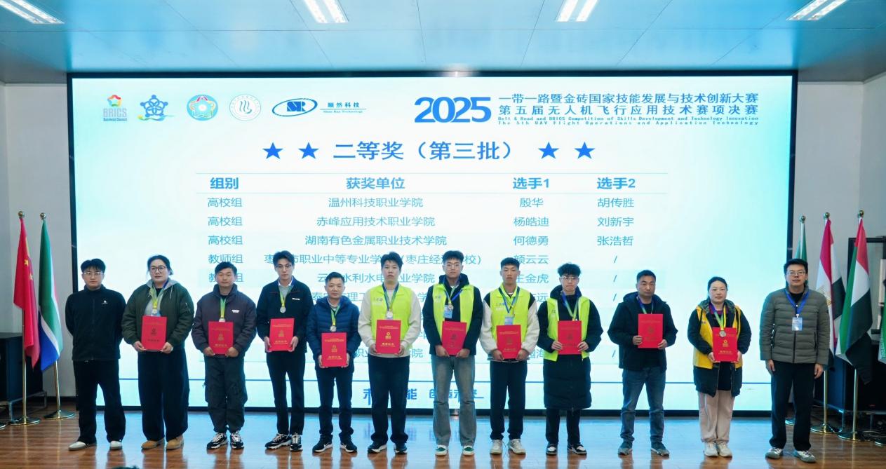 1228日,2025年一带一路暨金砖国家技能发展与技术创新大赛无人机飞行应用技术赛项圆满落幕。枣庄经济学校智能制造系颜云云老师荣获该赛项银牌并晋级北非国际赛,枣庄经济学校获优秀组织奖。