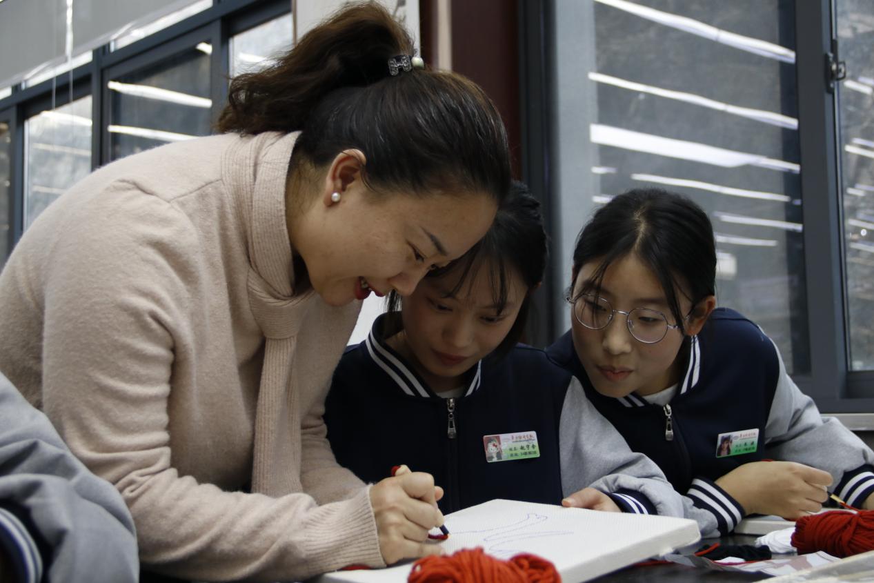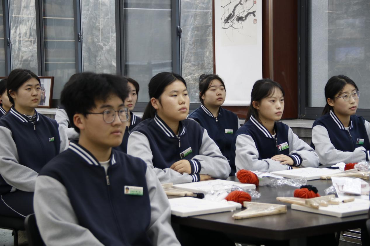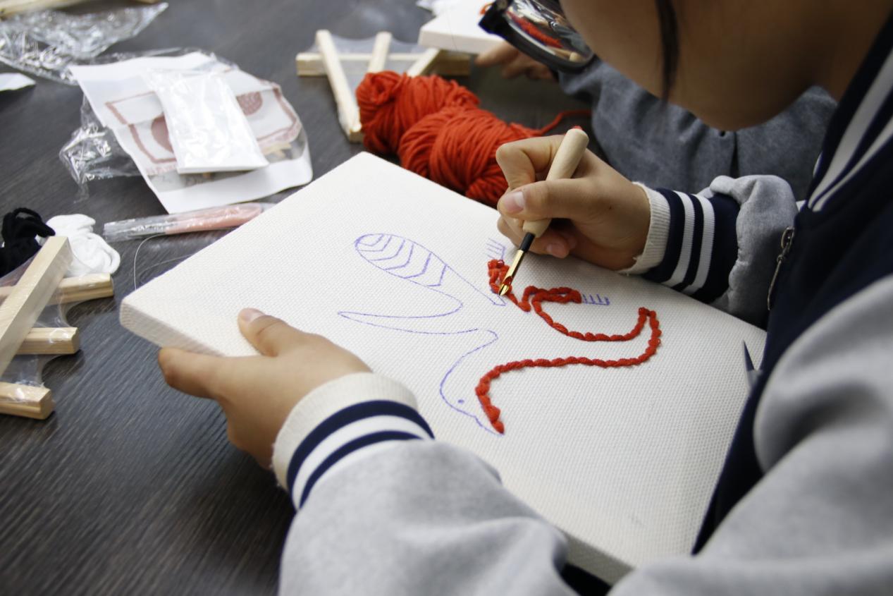 文化讲解结束后,备受期待的“凤鸟”戳戳绣实践环节正式开启。博物馆工作人员与学校指导教师协同配合,从工具规范使用、针法技巧要领到图案精准勾勒,进行全方位示范讲解,同时耐心解答学子们的疑问,手把手指导操作细节。中职学子们充分发挥动手能力强、学习积极性高的优势,以饱满热情投入创作,将对凤鸟文化的理解与对传统技艺的热爱融入一针一线。