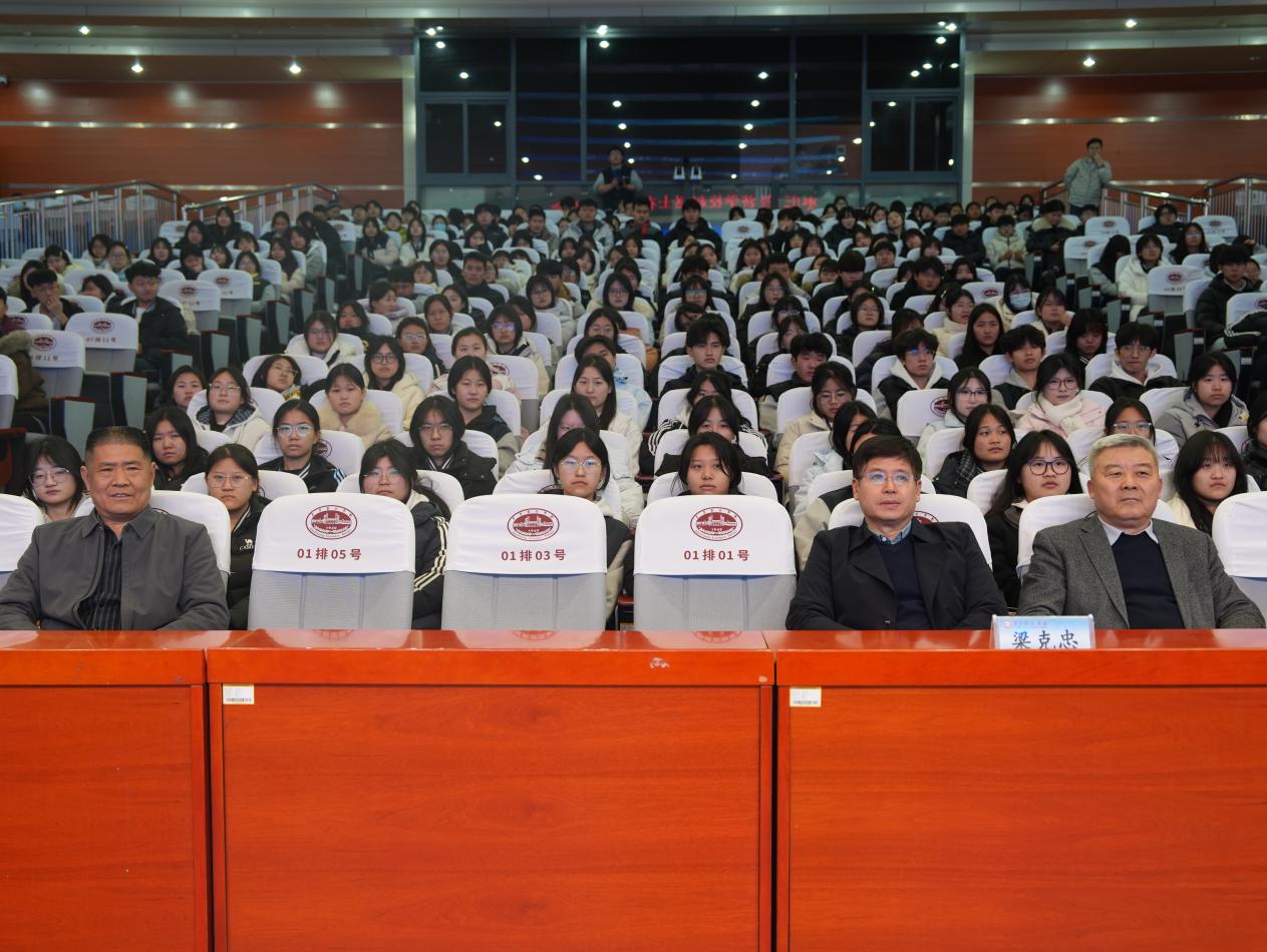 在热烈的掌声中,梁克忠与赵士存共同为“赵士存法治融合教育工作室”揭牌。随后,赵士存以“法治护航育新人”为主题作报告。他结合自身36年从警工作经验,以案释法、以法论事,深入浅出地讲解了与青少年学习生活密切相关的法律知识,既有法律的严肃性,又有很强的针对性和实用性。他通过一系列典型案例,深入剖析了青少年违法犯罪的成因及危害,引导同学们自觉抵制不良诱惑,增强法治观念,学会运用法律武器维护自身合法权益。赵士存在报告中指出,青少年正处于人生的关键时期,要知法于心、守法于行,努力成长为品德优良、遵纪守法的新时代中职生。同时,他也呼吁全体教职工进一步强化法治理念,坚持依法执教、依规育人,切实将法治教育融入教育教学全过程。
