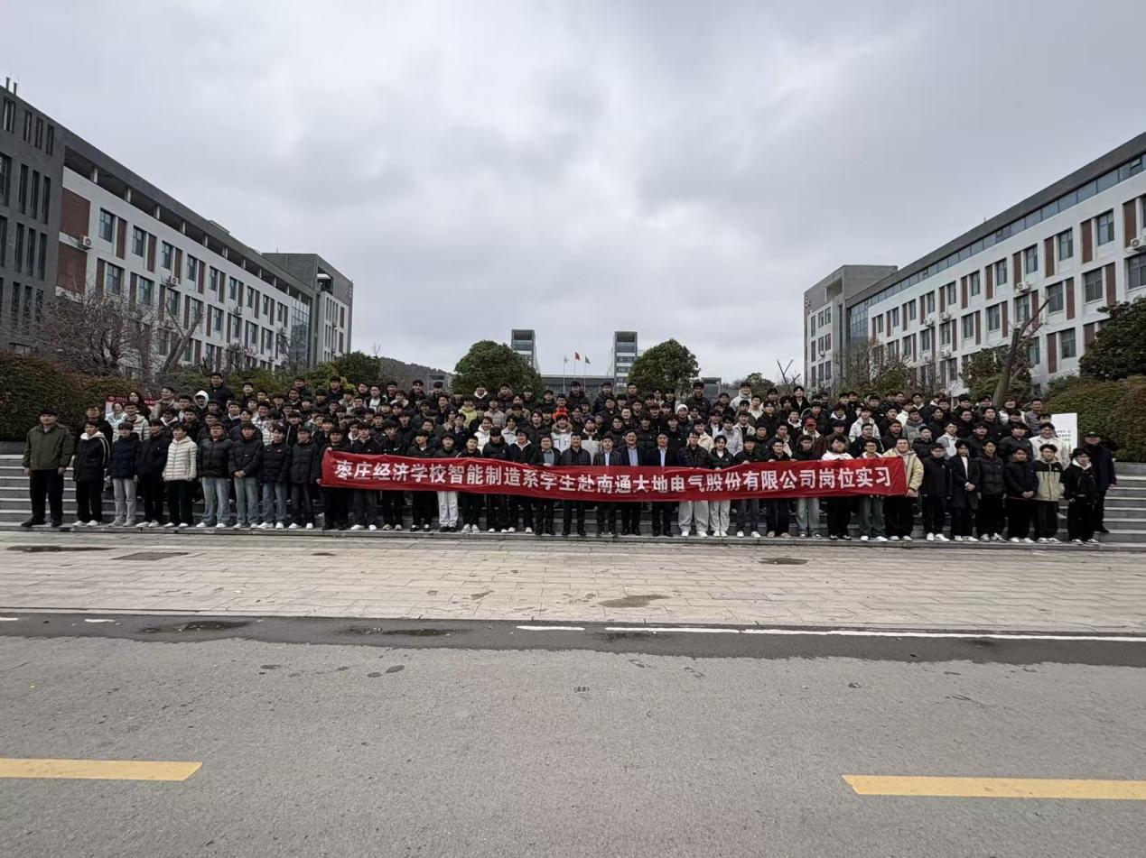 2026年2月24日,枣庄经济学校与南通大地电气股份有限公司产学研合作交流活动圆满举行。学校党委副书记、校长梁克忠,党委委员、副校长刘宇靖,党委委员李忠民一行带队前往企业护送2023级188名智能制造系学生赴岗实习。