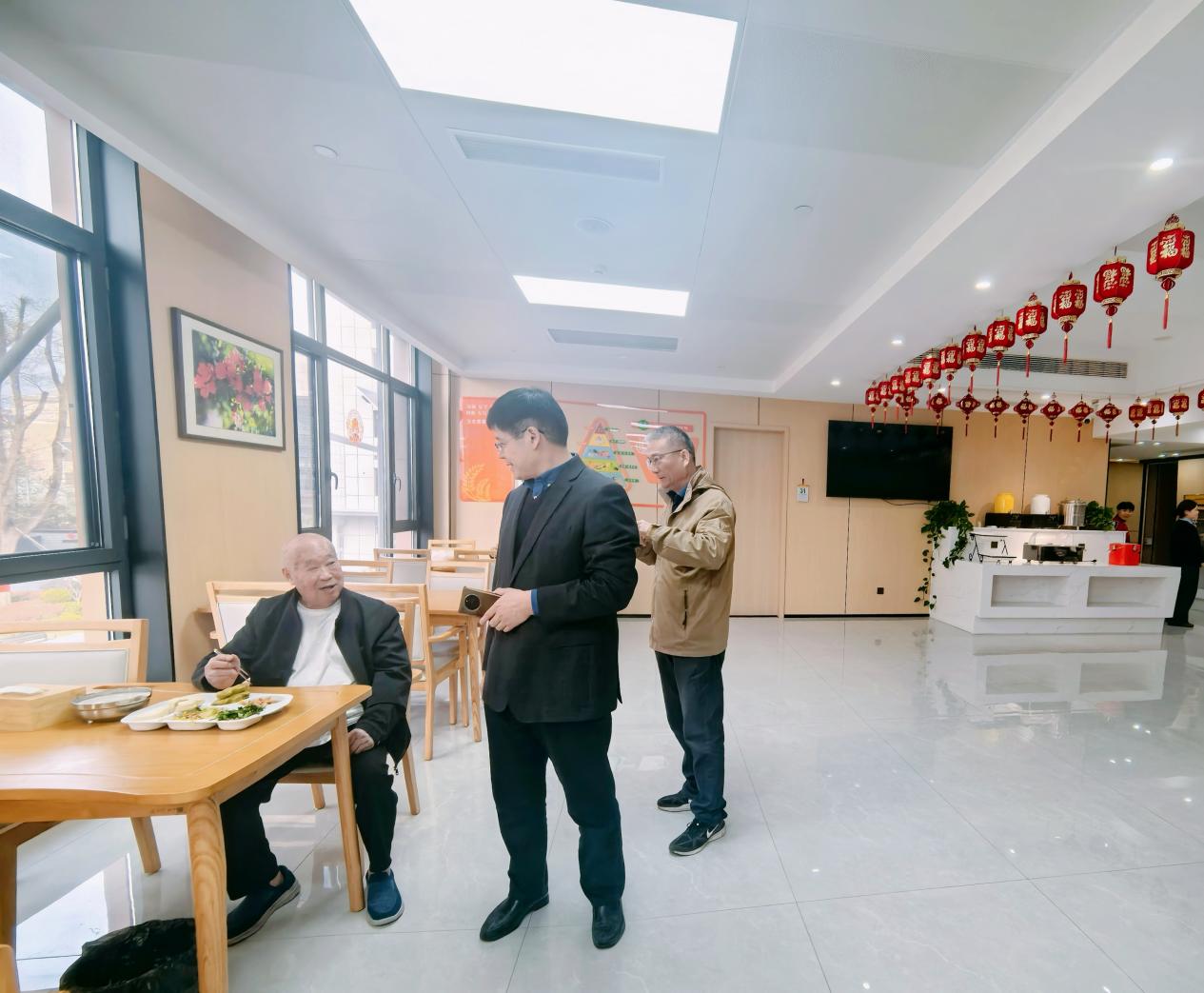 峄州医养有限公司院长王军热情接待了学校调研团队,王军透露自己是经济学校94级毕业生,对母校的这份特殊的情谊为双方合作奠定了深厚的情感基础。调研过程中,负责人王军介绍了下属5家康养机构的基本情况,带领学校团队先后参观了企业整体建设、标准化食堂、康养楼及康复楼等区域,实地了解企业医养结合的运营理念和模式、硬件配套与服务流程。团队还与康养楼内的老人亲切交流,细致询问居住体验与康养服务保障情况,直观感受精细化、人性化的服务理念,为专业教学对接行业实际积累了鲜活实践素材。